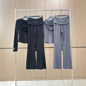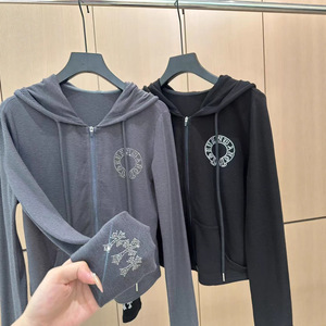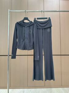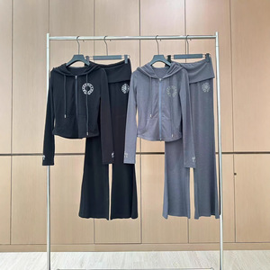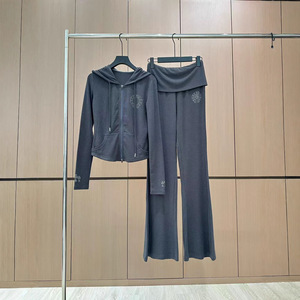 ch25秋冬新款时髦休闲烫钻连帽修身上衣➕松紧腰长裤套装