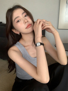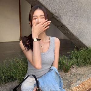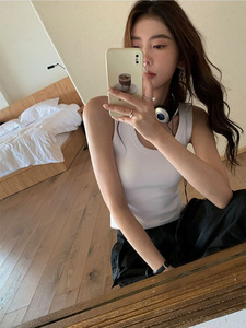 2025现货螺纹背心女夏季新款设计感新款U领无袖打底女装白色上衣