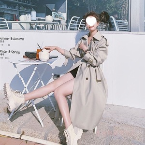 秋冬新款感中长款卡其色风衣外套女收腰英伦风休闲大衣