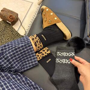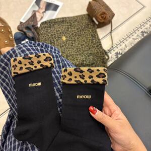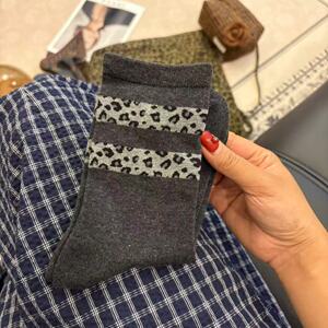 秋冬翻口简约豹纹系列女袜韩系中筒袜灰色豹纹咖色豹纹女袜