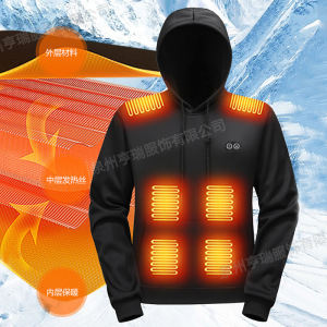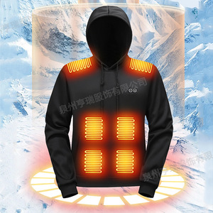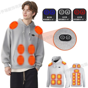 跨境新款智能发热连帽卫衣冬季双控多区电加热户外休闲针织连帽衫