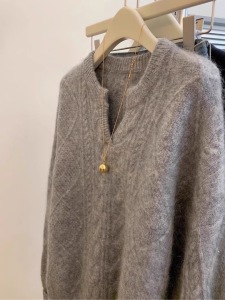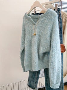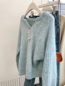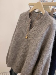 2025秋冬新款穿搭100羊毛女宽松慵懒风麻花软糯半开v领毛衣外穿