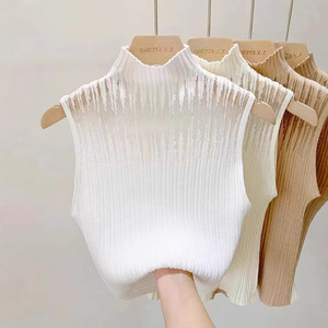 新款无袖针织中高领针织衫假领子女外穿上衣马甲修身显瘦跨境厂家