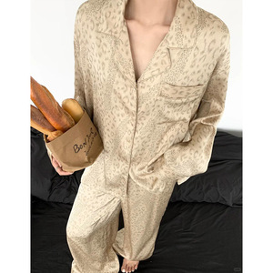 法式高级感轻奢睡衣女优雅休闲豹纹提花简约女长袖长裤套装可外穿