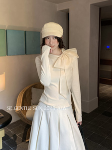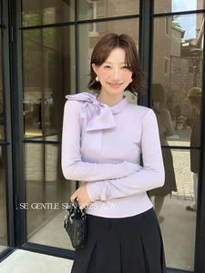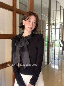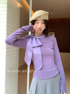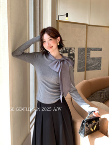 秀熙熙2025秋季白标韩版优雅气质纯色系带显瘦针织衫上衣女89539