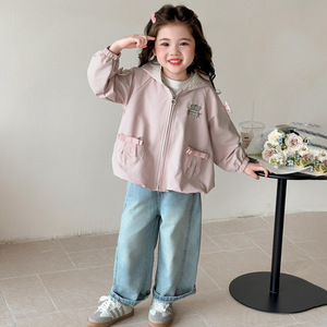 女童外套秋2025新款运动风连帽儿童夹克衫女宝宝秋装上衣小童衣服