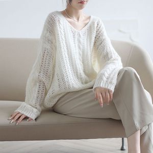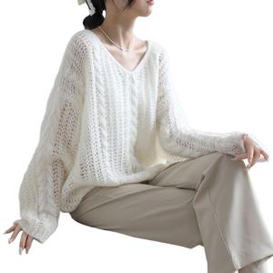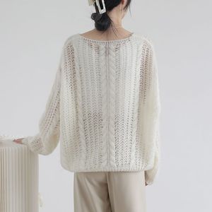 镂空薄款针织衫女新款春夏2025简约慵懒风套头毛衣女宽松上衣直发