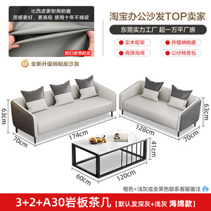 办公沙发简约现代茶几组合接待会客休息三人位小型办公室沙发真皮