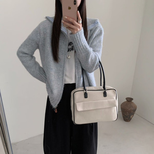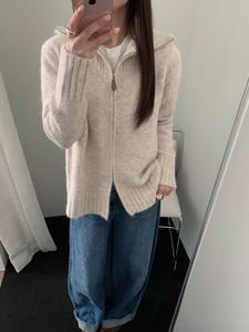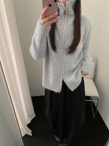 实拍双拉链立领针织开衫女款秋季新款时尚洋气百搭毛衣外套潮