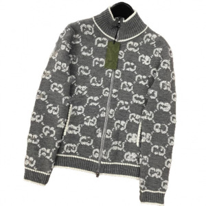 高版本南油G家新款毛巾绣立领拉链双G满印针织羊毛开衫 女装