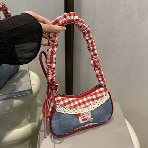 跨境2025新款潮时尚格子布单肩腋下包女高颜值撞色拼接手提包批发