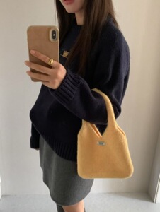 东大门同款羊毛针织包25年新款糖果色少女手拎包秋冬百搭毛线包包