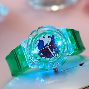 跨境新品蜘蛛侠儿童手表男孩男童指针式识字LED七彩闪灯石英腕表