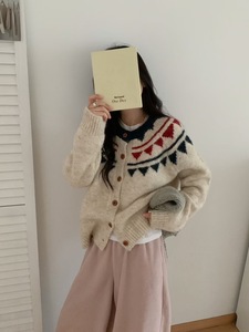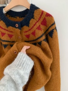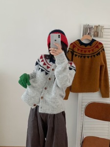 复古费尔岛羊毛显白毛衣外套女韩版秋冬新款宽松百搭洋气针织开衫
