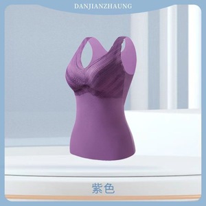 秋冬季亲氧德绒双面保暖背心带胸垫外穿防寒加绒加厚自发热内衣女