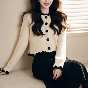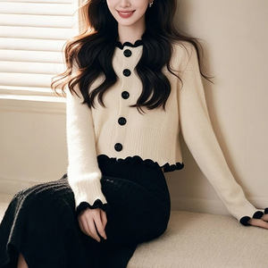 时尚气质百搭小香风春秋针织开衫小众设计感单排扣长袖毛衣外套女