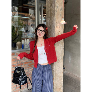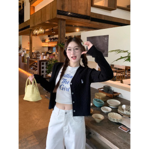 针织开衫女早秋穿搭2025新款毛衣外套高级感领刺绣上衣