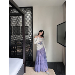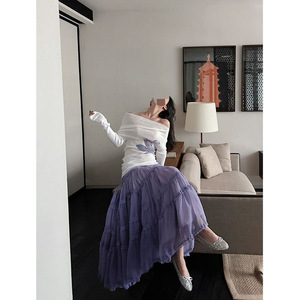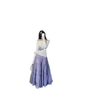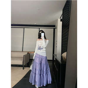 香芋紫层叠感蛋糕裙透气网纱半身裙女夏季新款印花显瘦上衣套装潮