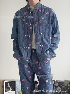 驴家高品质25新款刺绣印章条纹夹克珍珠水钻套装嘉尔外套裤子牛仔