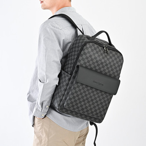 格子双肩包商务百搭休闲男女通勤电脑背包大容量旅行背包书包双肩