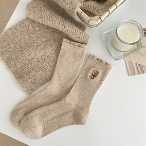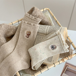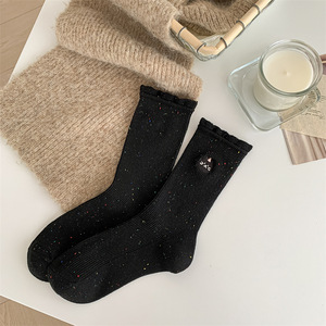 可爱袜子女春秋中筒袜ins纯色点子纱花边堆堆袜卡通刺绣学生长袜
