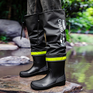 插秧靴插田男女高筒雨鞋软厚底水田鞋袜系带过膝防滑下水鞋防滑靴