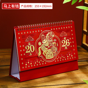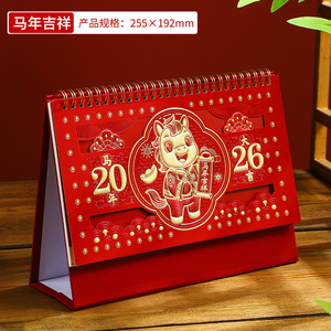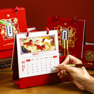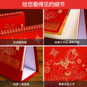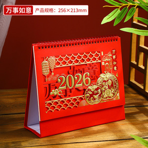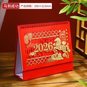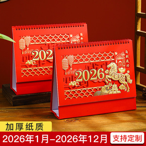 2026马年镂空台历定制新款中国红喜庆日月历商务企业送礼桌面摆件
