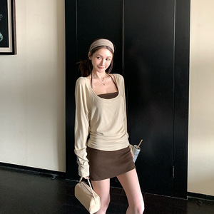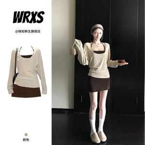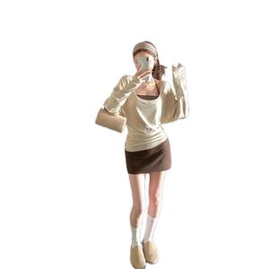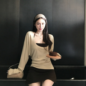 【】纯欲套装长袖恤内搭吊带背心女夏季包臀半身裙三件套