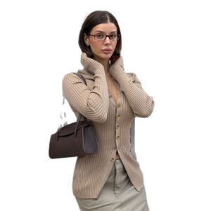 美式街头简约风Polo领收腰修身百搭毛织上衣辣妹单排扣针织打底衫