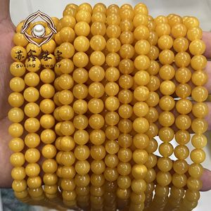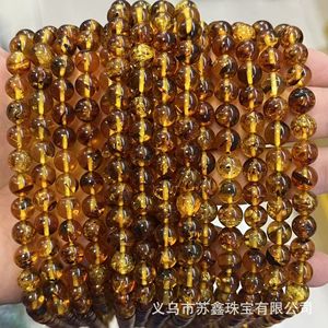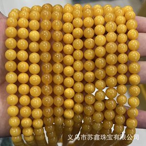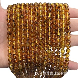 鸡油黄天然蜜蜡散珠花珀圆珠天然琥珀串珠 半成品DIY手串饰品配件