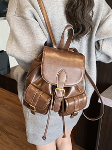 高级感复古女式双肩包2025新款通勤百搭后背包精致超火迷你小书包