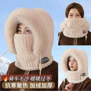 新款骑行帽子毛绒麻花冬季围巾新款保暖骑行防风连帽防寒加厚护耳