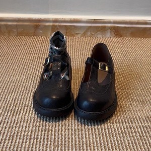牛皮版~复古英伦风小皮鞋女新款小众布洛克真皮T字扣带粗跟小皮鞋