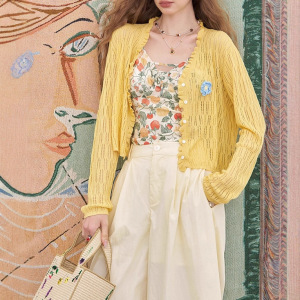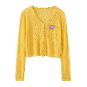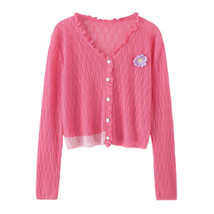 2025秋季新款韩版甜美减龄木耳边立体花朵针织开衫外套女