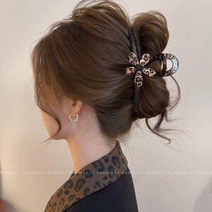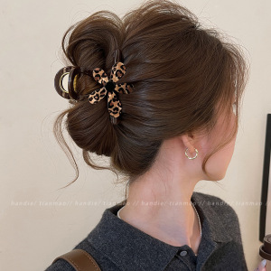 气质豹纹花朵发夹抓夹女2025新高级感后脑勺盘发大号发量大鲨鱼夹
