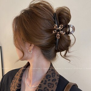 中号【巧克力棕底夹】豹纹花朵抓夹
