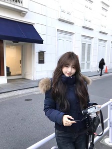 2025年冬季新款连帽大毛领小个子短款宽松加厚羽绒棉服外套上衣女