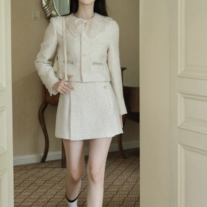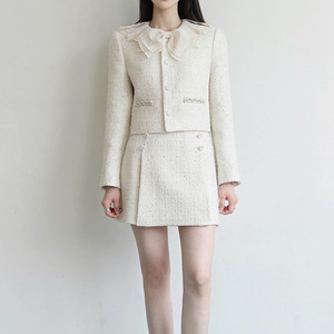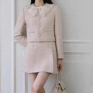 且锦瑟 "静奢千金"混纺时尚套装外套+半裙两件套长袖短外套