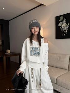 四季青2025秋季新款韩系露肩字母印花卫衣女内搭纯色背心女两件套