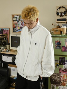 美式立领外套男女2025新款白色夹克潮牌宽松休闲运动百搭户外上衣