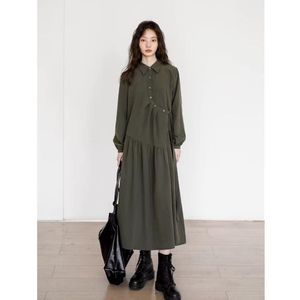 法式高级感长袖衬衫连衣裙女秋季大码胖mm复古设计感斜扣气质长裙