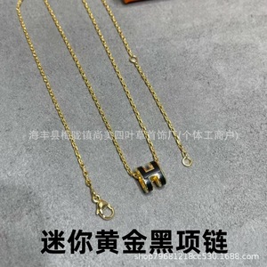 精工版V金H珐琅大号项链女mini锁骨链吊坠高级时尚百搭流行女耳钉