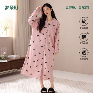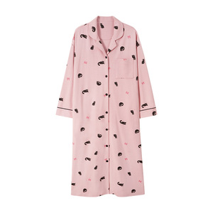 【抗菌莱卡棉】A类女士睡衣纯棉睡裙春秋季粉色开衫长袖家居服女