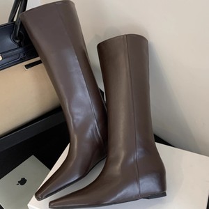现货~内增高5cm尖头棕色美拉德中筒骑士靴女鞋2025新款长筒长靴子