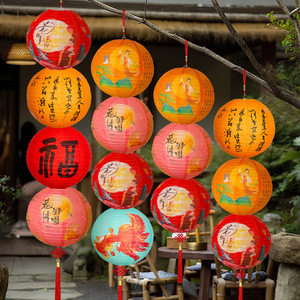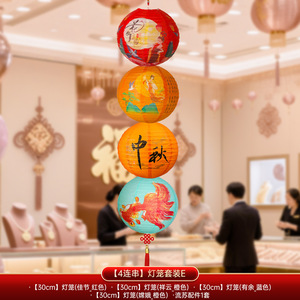 中秋节纸灯笼串挂饰中式古风国潮发光花灯商场户外拍照氛围感装饰