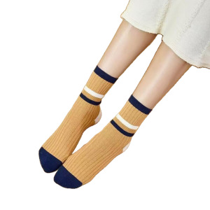 女士中筒女袜秋冬季防臭吸汗拼色百搭条纹长筒袜子女舒适百搭韩系