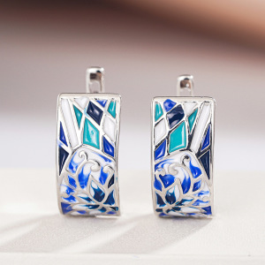 曹适亚马逊跨境新款耳扣女 青花瓷晕染画油饰品 小清新新中式首饰