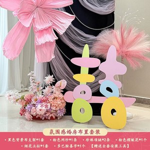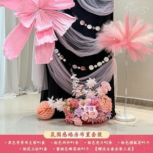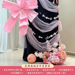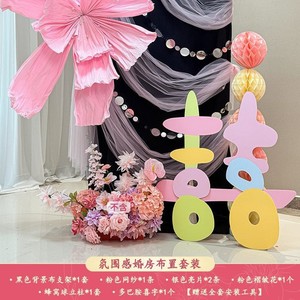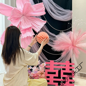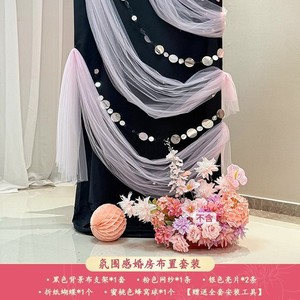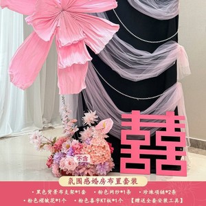 结婚晨袍拍照背景婚房喜字布置套装男方客厅女方卧室酒店婚礼装饰