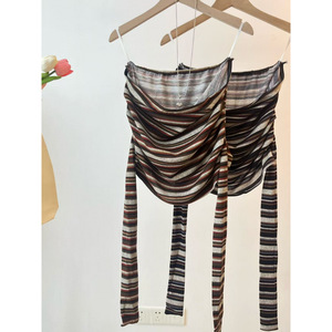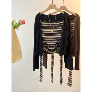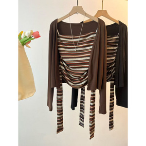 2025早秋新款韩系气质高级感小众条纹抹胸+显瘦休闲长袖开衫套装