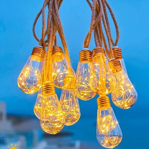 户外太阳能麻绳串灯防水露营灯串圣诞节装饰铜丝灯串庭院装饰灯